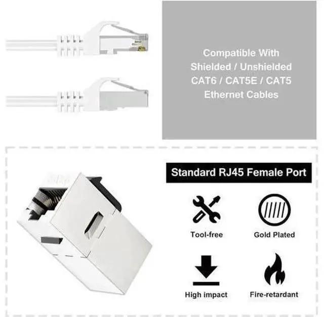 The Cat6 RJ45 coupler allows you to connect two Cat 6 ethernet cables effortlessly. No more worries about short cables