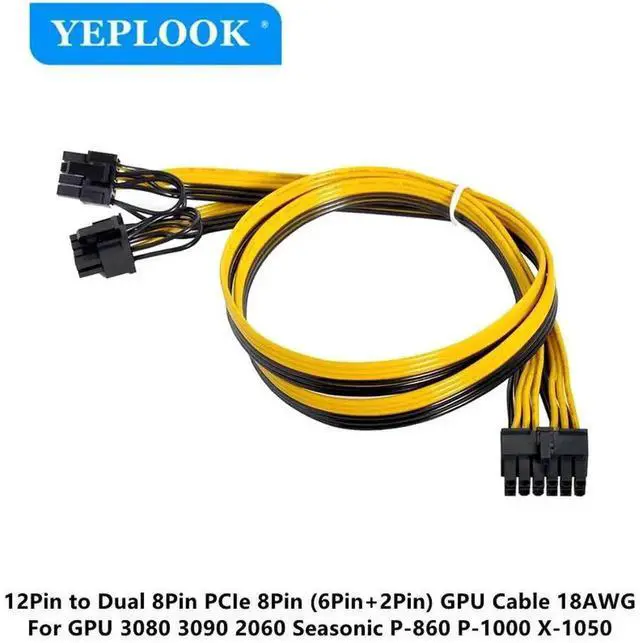 12Pin to PCI-e Dual 8Pin 6+2Pin VGA GPU Power Cable ForSeasonic P-860, P-1000, X-1050 Old Version Modular Power, 18AWG 60+60 CM