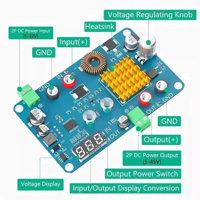DC5-32V to 5-45V 3A Wide voltage DC power supply regulator with voltage display and touch switch
