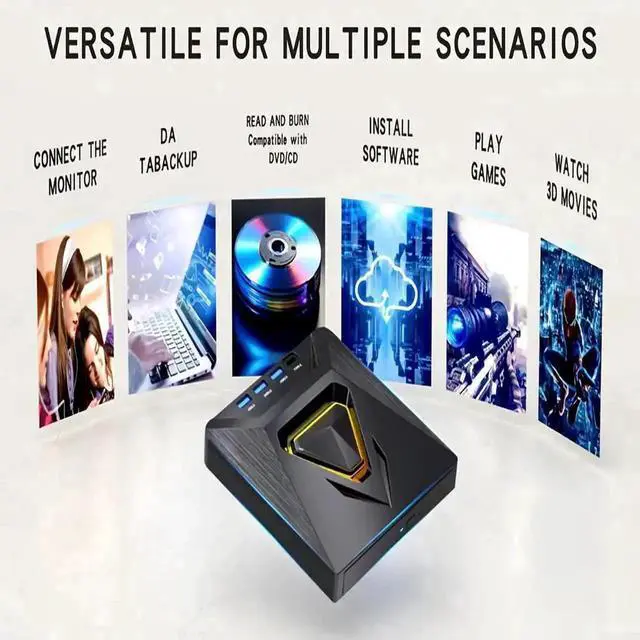 The optical drive supports reading and writing of CD±R/RW, CD-ROM, DVD±R/RW, DVD-RAM, VCD, and SVCD. In addition, This USB-A and USB-C external disk drive supports different devices such as Macbook, iMac, Notebook, Desktop, and Laptop, etc. It's compatible with Windows 11/10 /8 /7 /XP, Vista 7 / 8, Linux, Mac OS 10.6 or above. (Cars, TVs, Tablets, Smartphones, Projectors and Blu-ray disk are not supported; Windows 11 requires media player and network).