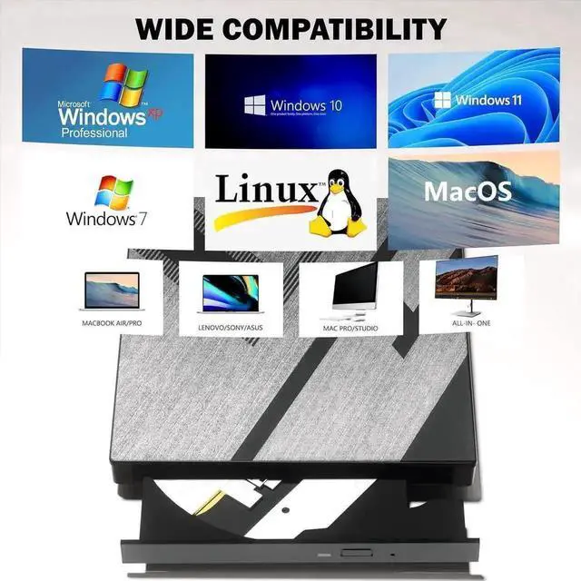 ![Alt view image 5 of 7 - [7 in 1] External DVD Drive, External CD/DVD Drive for Laptop with USB A & USB C Ports and SD/TF Port, CD DVD Burner DVD Player USB 3.0/Type C, CD ROM External Drive for PC Laptop Windows Linux](https://c1.neweggimages.com/productimage/nb640/C4U7S2602090JNAOX23.jpg)