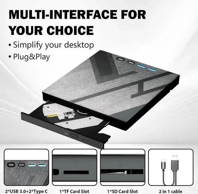 ![Alt view image 4 of 7 - [7 in 1] External DVD Drive, External CD/DVD Drive for Laptop with USB A & USB C Ports and SD/TF Port, CD DVD Burner DVD Player USB 3.0/Type C, CD ROM External Drive for PC Laptop Windows Linux](https://c1.neweggimages.com/productimage/nb640/C4U7S2602090JNAR38C.jpg)