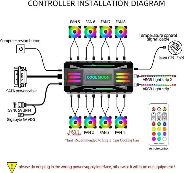 Desktop Computer P-argb Fan Temperature Control Controller: direct SATA Power Input, support 8 PWM intelligent temperature control (4-pin) + 10 5V ARGB interface (3-pin) + remote wireless remote control three in one function, enables users to optimally expand cooling capability within the chassis