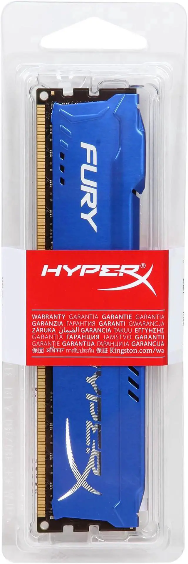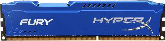 HyperX FURY DDR3 MemoryAuto-overclocking up to 1866MHz to get you in the game faster.HyperX® FURY DDR3 memory automatically overclocks up to 1866MHz1 for hassle-free, plug-and-play functionality that gets you in the game faster and instant top-level performance that helps you win it. With voltages as low as 1.35V, it draws less power and generates less heat, while supporting Intel's new 100 Series chipset. Its asymmetric, aggressive design lets you stand out from the crowd of "squared" designs and features quality aluminum and a diamond-cut finish. It's available in black, blue, white and red with a black PCB to match the latest color schemes of motherboards, cases and other components.