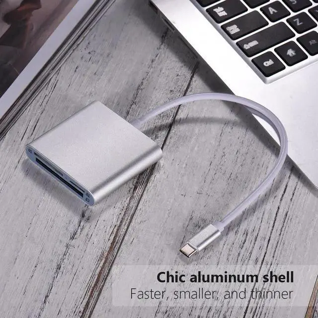 3 in 1: Three card slot, supports read the data of SDXC, TF, CF at the same time, free the hassle of plugging and unplugging once again, powerful compatibility.