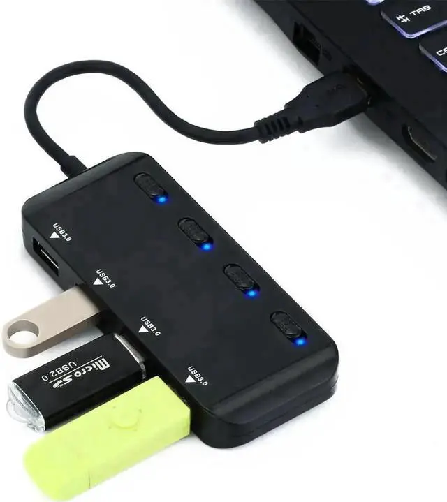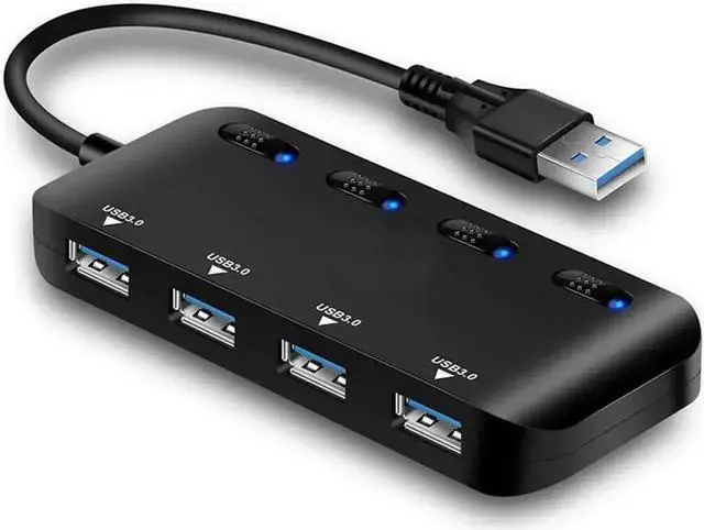 USB 3.0 Hub Splitter - USB Extender 4 Port USB Ultra Slim Data Hub with Individual Power Switch and LED