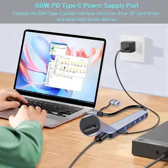 USB C PD Charging allows you to charge your Laptop with a high speed pass-through charging up to 60W. Keep your Laptops on power all the time.