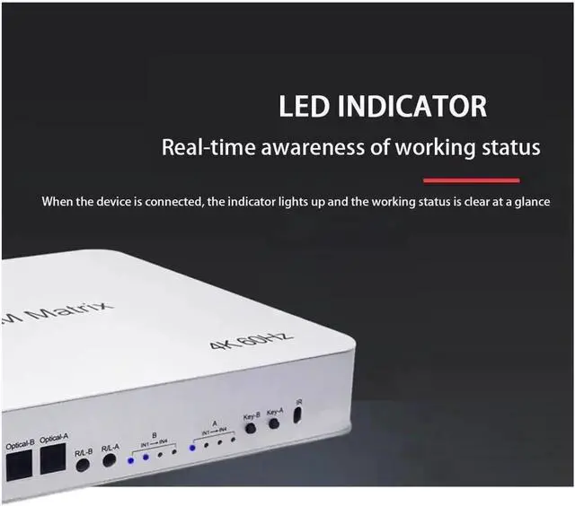 This HDMI 4x2 KVM matrix can connect 4 HD signal sources to 2 HD display terminalswith optical fiber or stereo headphone output. Two sets of mouse and keyboard can control devices on 4 PC ports at will. The matrix allows four HDMI devices to be switched or split easily to two HDMI compatible monitors or projectors. And any output ports can realize independent audio output by optical fiber or stereo headphone.