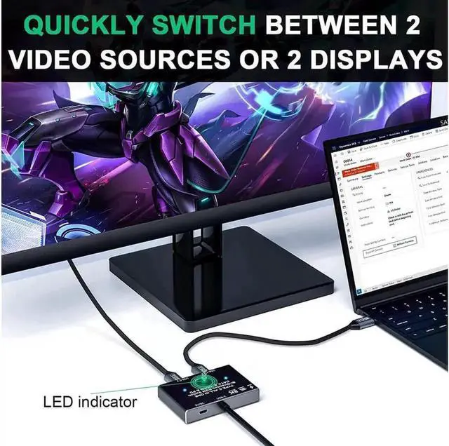 [Bidirectional USB C Switch Selector] This USB-C switch allows 2 USB-C video source share 1 display or 1 source share 2 displays. NOTE:Two displays CANNOT display simultaneously. You need to use a standard USB-C USB3.1 version Gen-2 Cable to connect this switch and use the USB cable to power the switch.