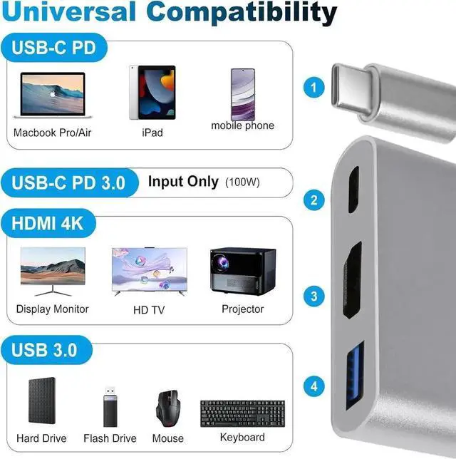 HDMI Adapter: The QAJOPFN USB C to HDMI Adapter is a superior product that integrates an HDMI 4K@30Hz output port a PD charging port (charging function only) and a USB-A 3.0 port. You can easily mirror your iPhone or iPad screen to TVs projectors and monitors to enhance your home theater experience improve office productivity and facilitate travel and many other uses. Ultra HD 4K