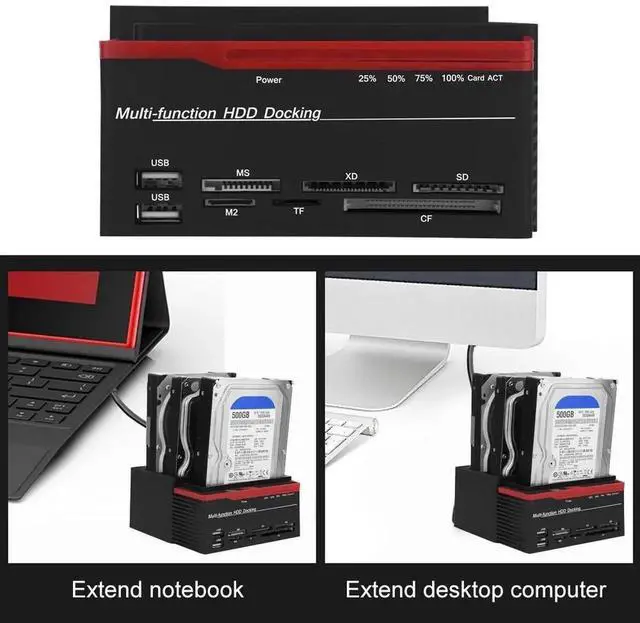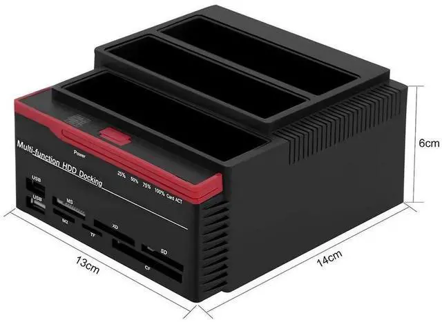 This threedrive docking station supports 2.5" & 3.5" SATA/IDE HDD, direct plug bare disc without installing. Besides, it supports hard disk offline clone. And it can simultaneously read two hard disk drives (6TB * 2), two USB2.0 expansion HUB interfaces. You deserve it!