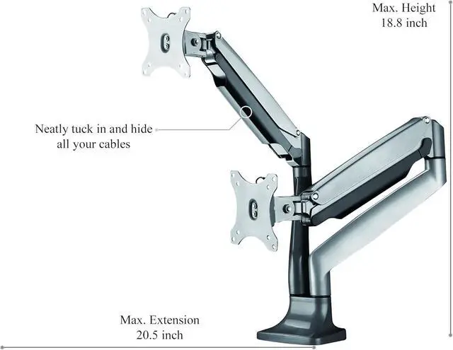 Universal Fit: Talk about the perfect size! The TechOrbits dual monitor desk mount is suitable for most 13in to 30in screens with 75mm x 75mm and 100mm x 100mm standard VESA mount patterns.