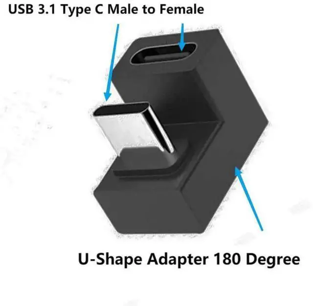 USB Type C U Shape Adapter,180 Degree USB C Male to Female Adapter Convertor Extension for Laptop & Tablet & Mobile Phone