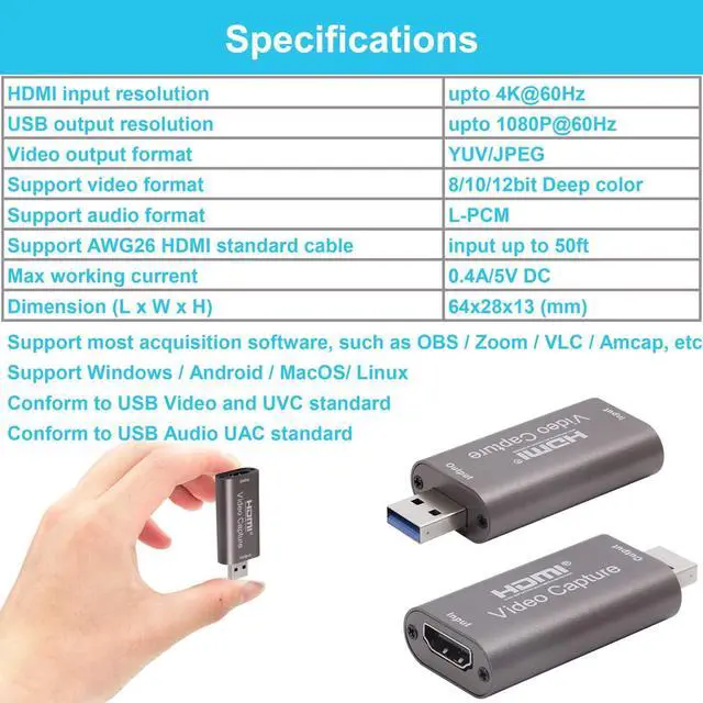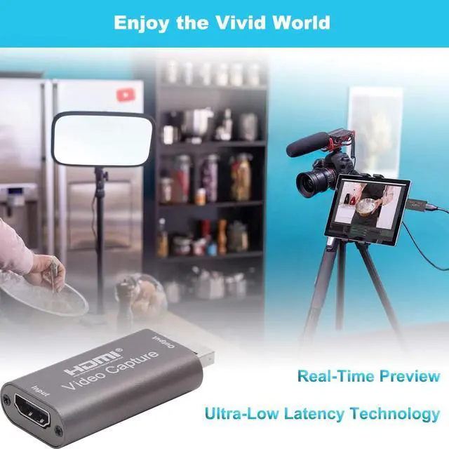 Plug and play- Hdmi video capture easily connect your DSLR, camcorder, or action Cam to your PC or Mac. Hdmi to usb video capture card is small, light and portable