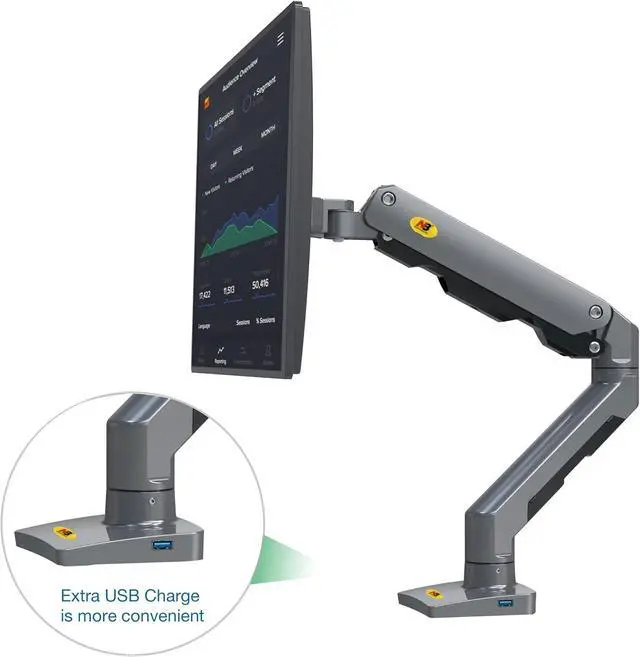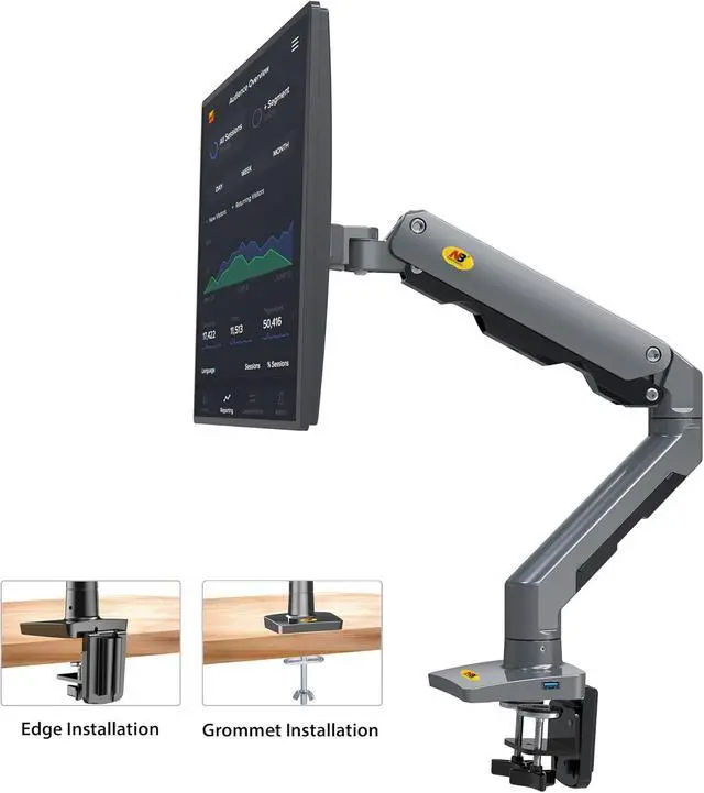 STURDY & STABLE CONSTRUCTION: Arm stand with both C-Clamp mounting and Grommet Mounting are available(Desk thickness 0.8~3.1). Made of top quality steel and aluminum alloys, heavy duty construction keeps your arm mount stable. Extra USB Charge hub is available.