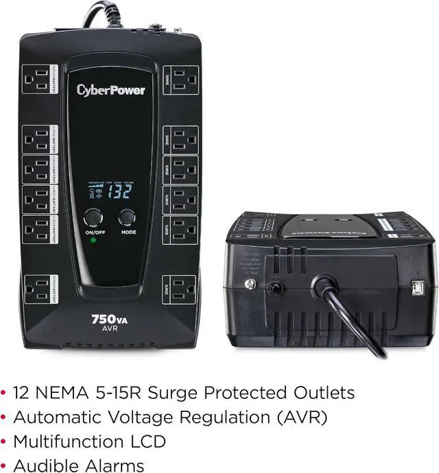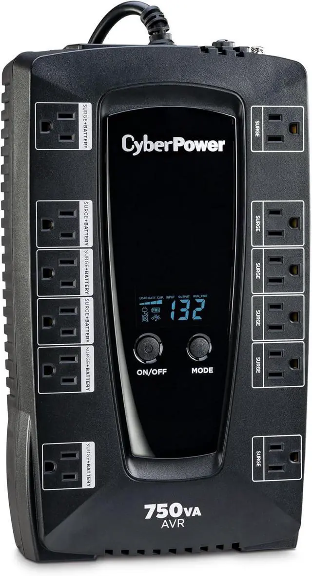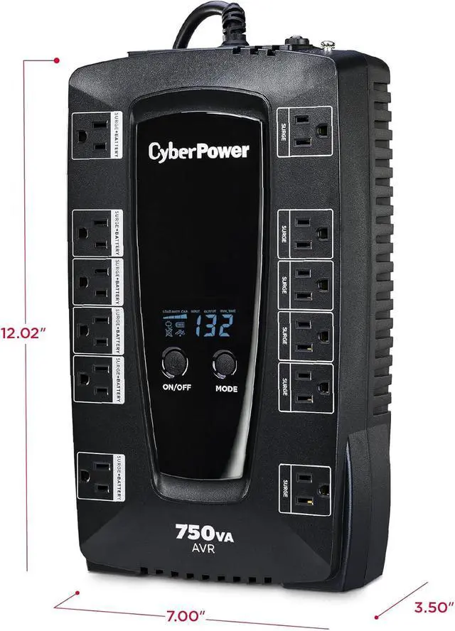 750VA/450W Intelligent LCD Battery Backup Uninterruptible Power Supply (UPS) System uses simulated sine wave output to safeguard desktop computers, workstations, networking devices, and home entertainment equipment