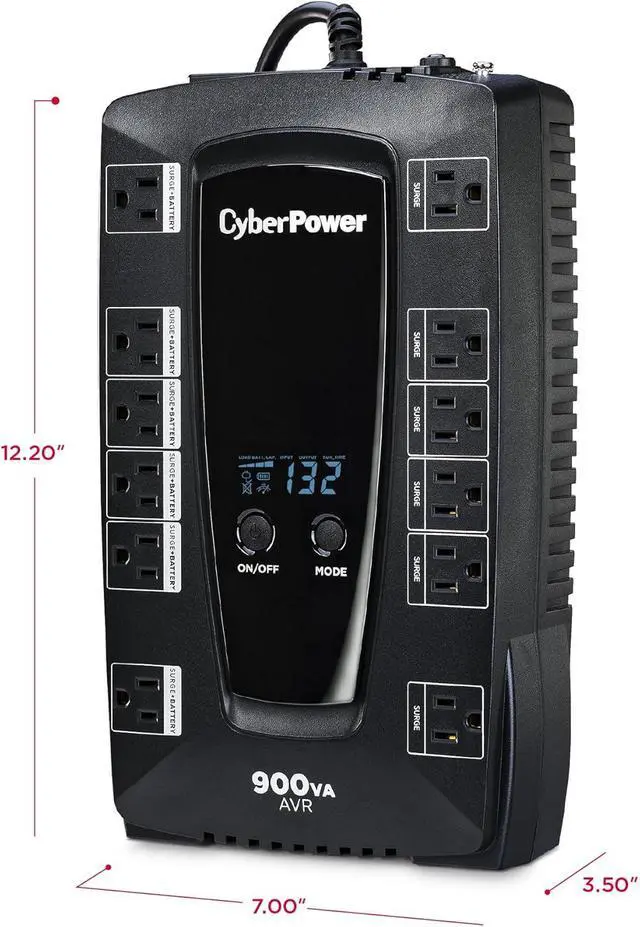 750VA/450W Intelligent LCD Battery Backup Uninterruptible Power Supply (UPS) System uses simulated sine wave output to safeguard desktop computers, workstations, networking devices, and home entertainment equipment