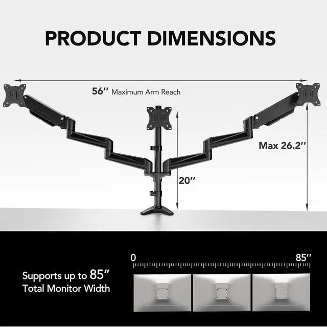 Increase Comfort &Efficiency - Complete your work in 3 monitors at the same times with comfortable view position. Now you can enhance your work efficiency in comfortable work posture.