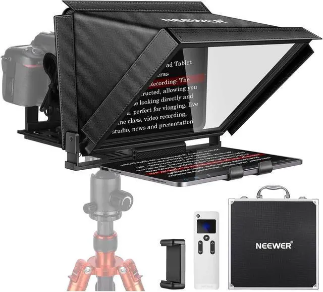 NEEWER X12 Aluminum Teleprompter with RT-110 Remote Control (Connected via Bluetooth on NEEWER Teleprompter App) & Carry Case, Compatible with iPad, iOS/Android Tablets, Smartphones, DSLRs (Black)