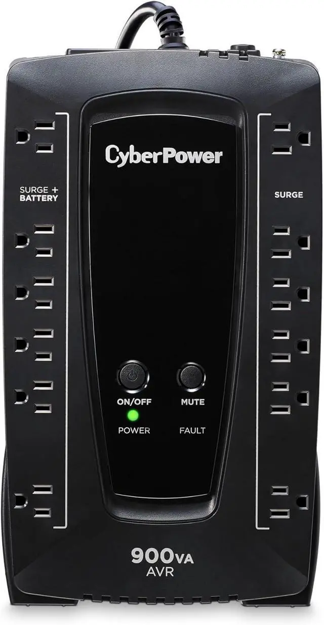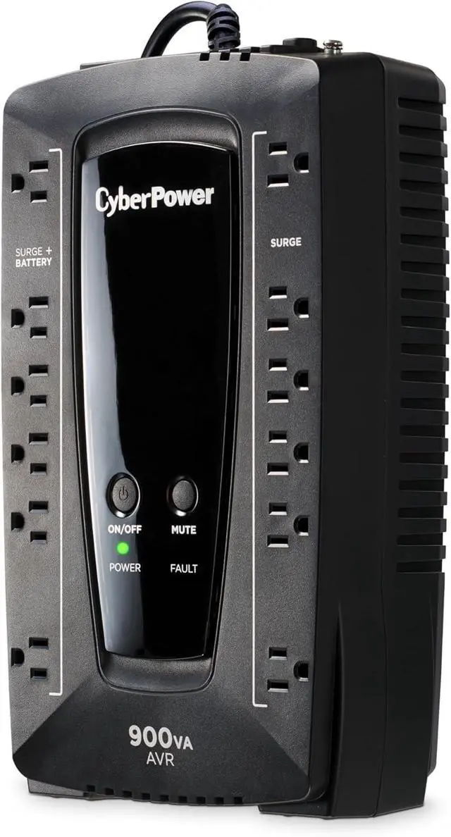 12 NEMA 5-15R OUTLETS: Six battery backup & surge protected outlets; Six surge protected outlets; INPUT: NEMA 5-15P right angle, 45 degree offset plug with five foot power cord