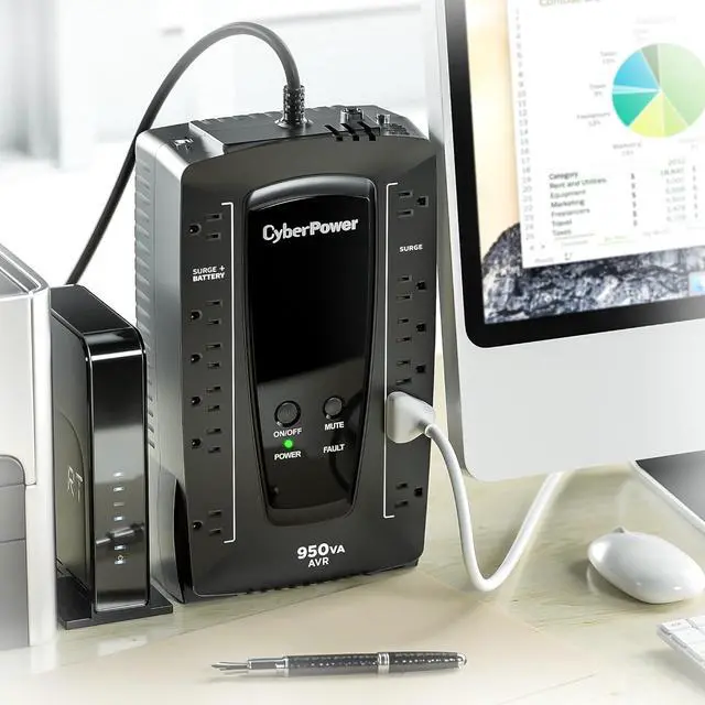 750VA/450W Intelligent LCD Battery Backup Uninterruptible Power Supply (UPS) System uses simulated sine wave output to safeguard desktop computers, workstations, networking devices, and home entertainment equipment