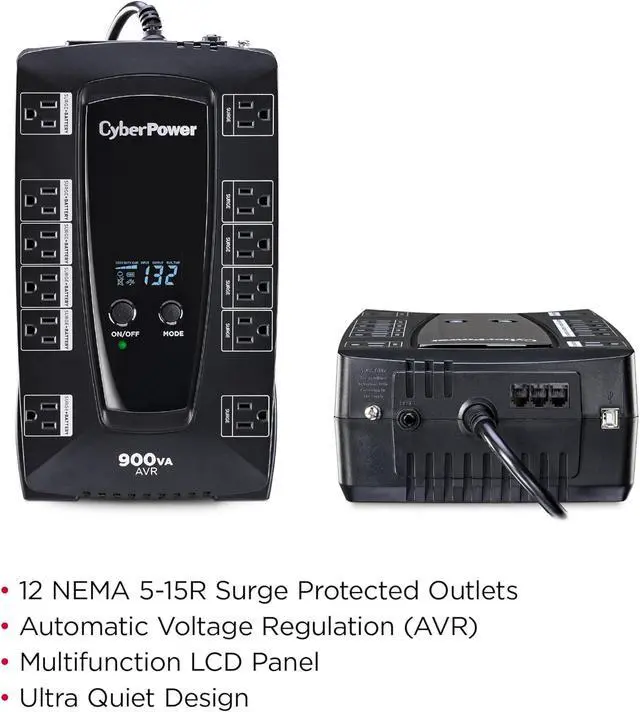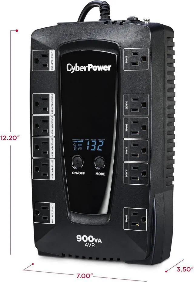 750VA/450W Intelligent LCD Battery Backup Uninterruptible Power Supply (UPS) System uses simulated sine wave output to safeguard desktop computers, workstations, networking devices, and home entertainment equipment