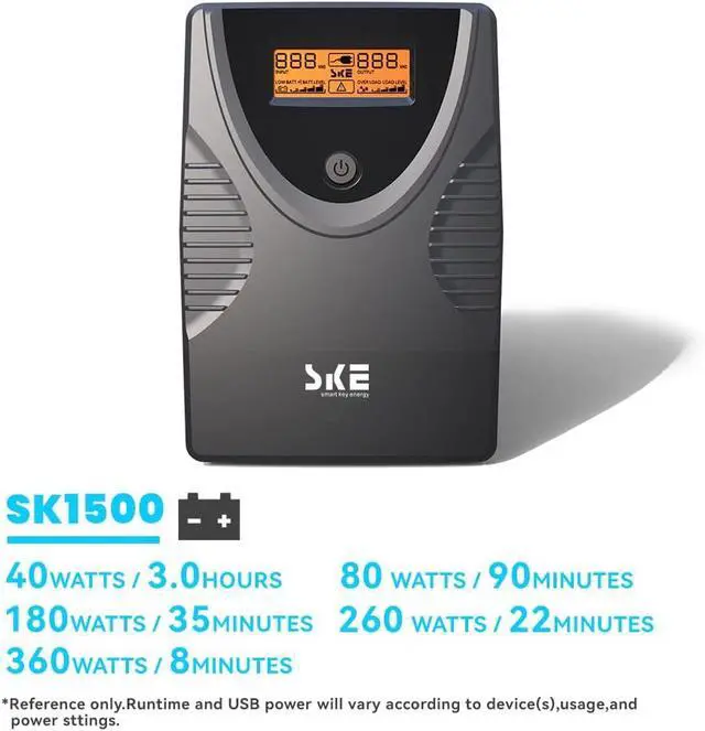 Ups Battery Backup and Surge Protector 425VA/240W,Computer Uninterruptible Power Supply Units,Battery Backup Intelligent LCD,SKE Back UPS,Uninterruptible Power Supply,Battery Backup for Computer SKE