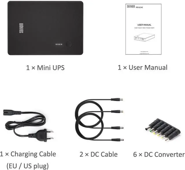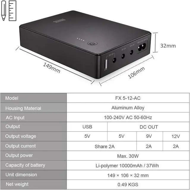 Mini uninterrupted power supply for power outage, compatible with router, modem, security camera, telephone, fax, printer, fingerprint recorder, LED strip lights, ect, and can still use the network in case of power outage.