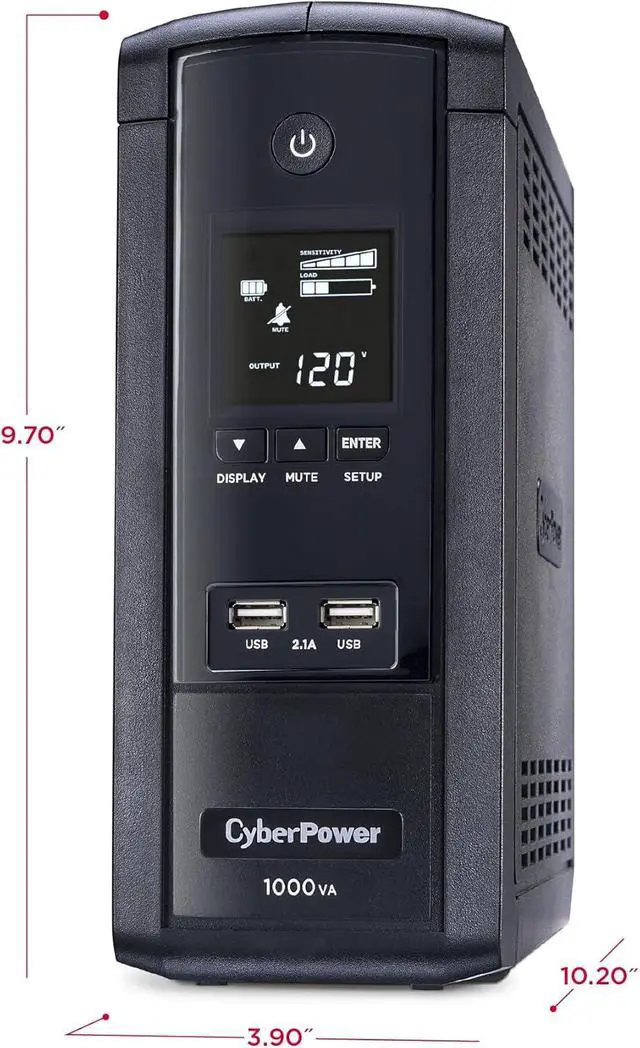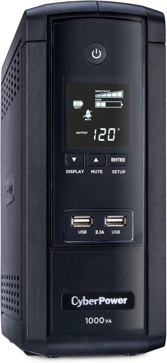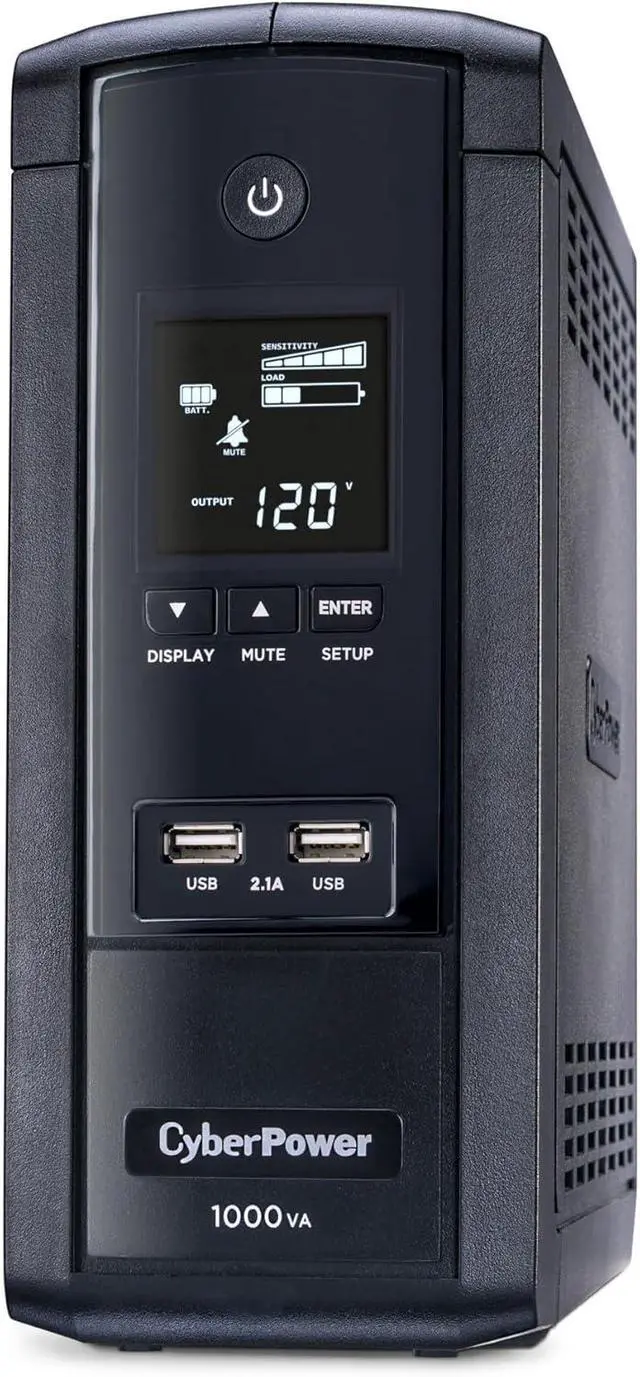 1000VA/600W Intelligent LCD Battery Backup Uninterruptible Power Supply (UPS) System uses simulated sine wave output to safeguard workstations, networking devices, and home entertainment equipment