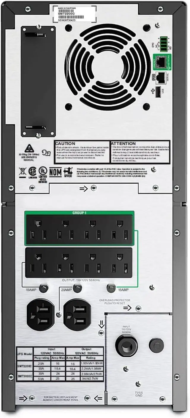 2200VA / 1980W Pure Sine Wave UPS battery backup.Form factor : Rack. Amperage : 20 amps.