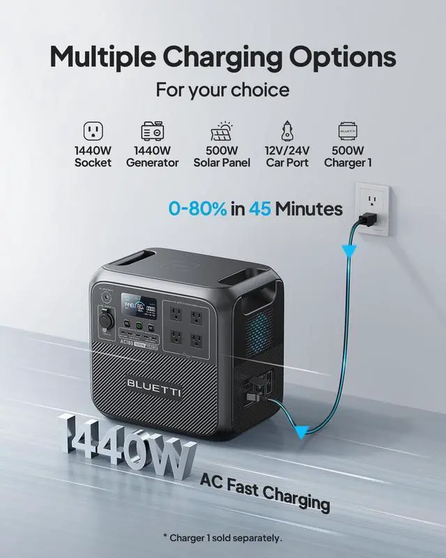 [Charged in 1 Hour] - The AC180 packs a 1152Wh LiFePO4 battery, which can be fully charged in just 1 hour at 1440W AC input - always ready to go when you need it.
