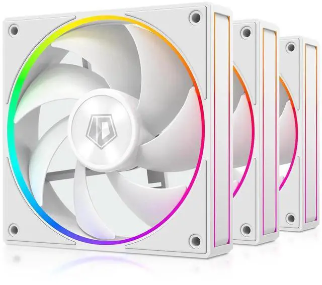 ID-COOLING AF-127-W-TRIO 120mm Case Fan ARGB FDB Bearing PC Fan Daisy Chain Connector Computer Fan for Radiator/CPU Air Cooler/Computer Case, 3 Pack, White