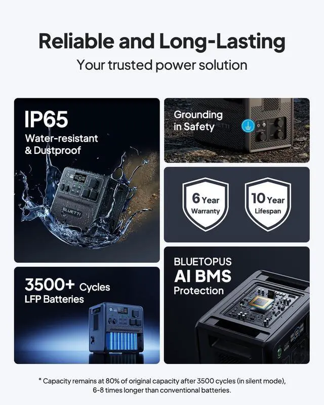 [Charged in 1 Hour] - The AC180 packs a 1152Wh LiFePO4 battery, which can be fully charged in just 1 hour at 1440W AC input - always ready to go when you need it.