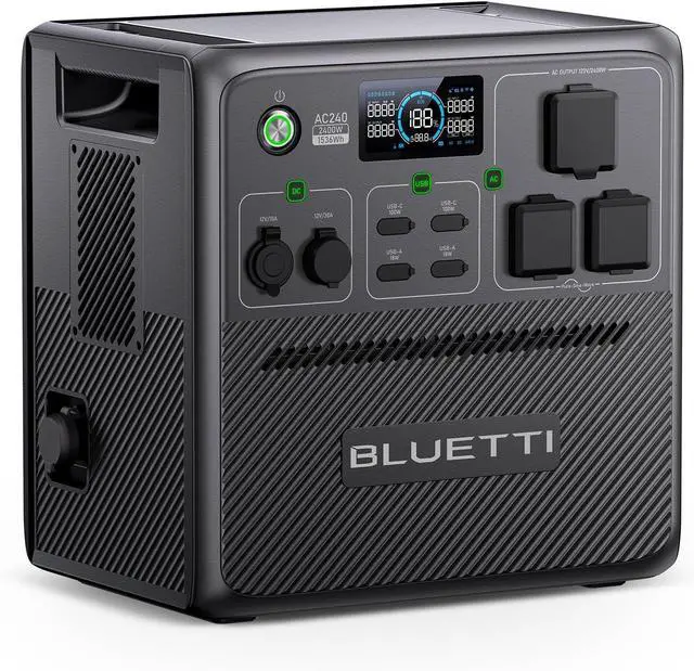 Portable Power Station AC180, 1152Wh LiFePO4 Battery Backup w/ 2 1800W (2700W peak) AC Outlets, 0-80% in 45Min, Solar Generator for Camping, Off-grid, Power Outage BLUETTI AC240