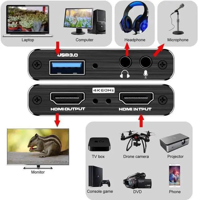 Please note: it only accepts 3.5 mm TRS standard microphone headset. Our 4K Video Capture can capture both HDMI video and HDMI audio, sending audio and video signals to computers and smart phones for preview and storage. It is the BEST Choice for you.