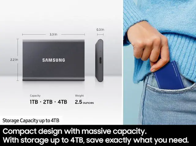 MADE FOR THE MAKERS: Create; Explore; Store; The T7 Portable SSD delivers fast speeds and durable features to back up any endeavor; Build your video editing empire, file your photographs or back up your blogs all in an instant