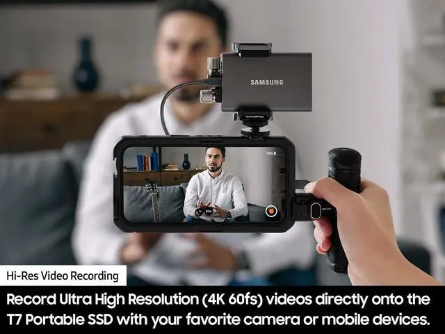 HI RESOLUTION VIDEO RECORDING: Record Ultra High Resolution (4K 60fs) videos directly onto the T7 Portable SSD with your favorite camera or mobile devices; Supports iPhone 15 Pro Res 4K at 60fps video and more³