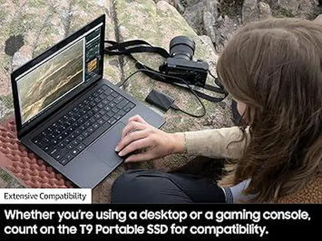 ADAPTS TO EVERY NEED: Whether youre using a desktop, camera or a gaming console3, count on the T9 Portable SSD for extensive compatibility; Its a true team player when it comes to heavy-duty application usage or file-saving