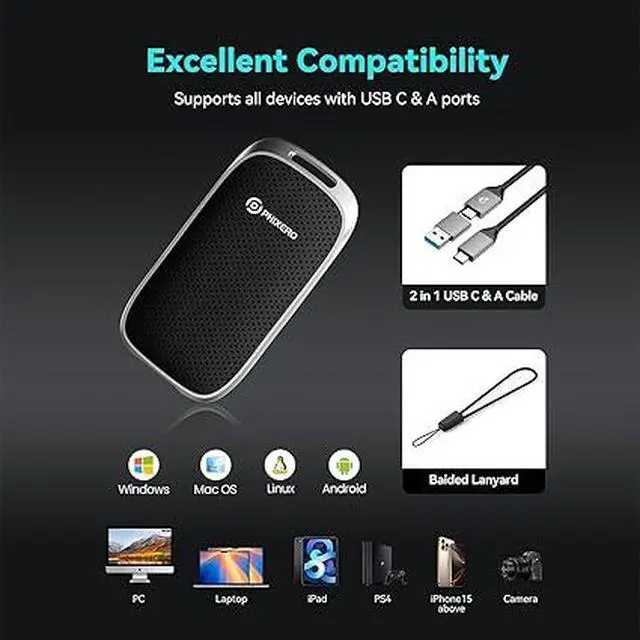 2-in-1 Data Cable Included:Comes with both USB C to C and USB C to A cables, ensuring seamless compatibility with all devicesnew MacBook/iPad Pro (USB C), old laptops (USB A), PS5, Xbox, Android phones, and moreno extra adapters needed