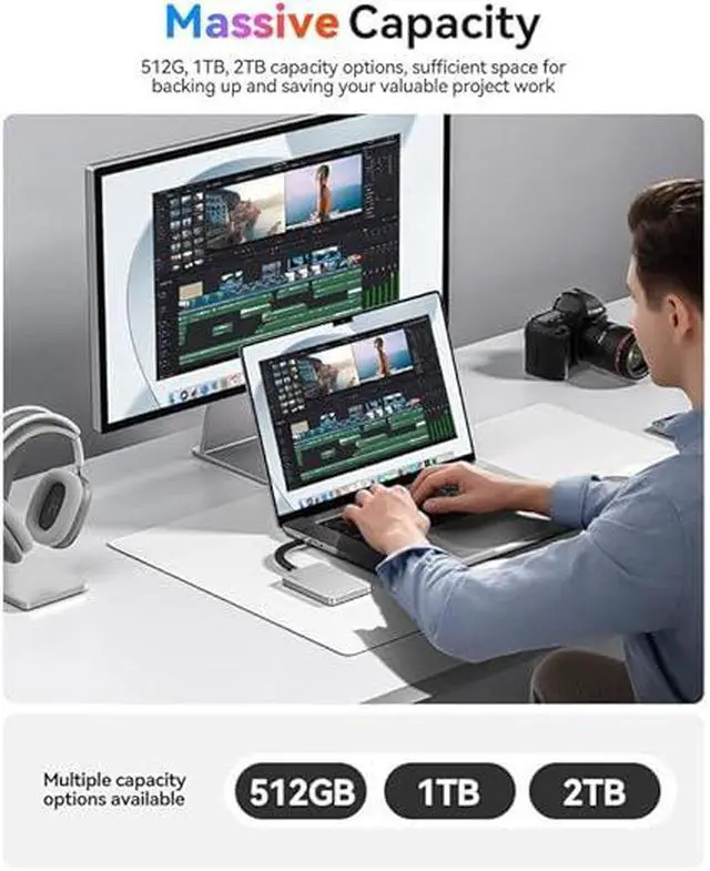 Lightning-Fast 10Gbps Speeds: Transfer large files in seconds with USB 3.2 Gen 2 (10Gbps) performance, reaching up to 1000MB/s up to 10x faster than HDDs.