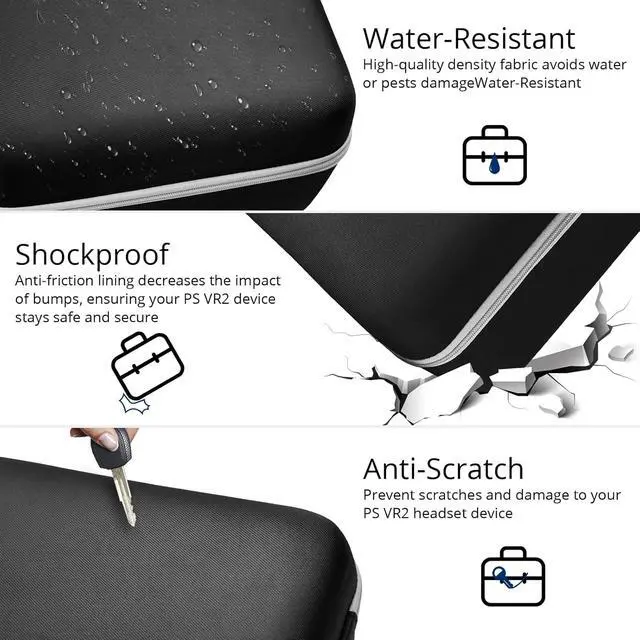 Complete Protection for Your Gear - VORI psvr 2 case features a rugged shell, reinforced corners, and a grooved interior to ensure maximum protection. It's built to withstand shocks, scratches, vibrations, and even water damage, to safeguard the headset, controllers, and other accessories from accidental damage during storage or transport
