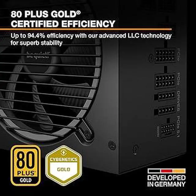 80 PLUS GOLD CERTIFIED Very high operating efficiency Pure Power 13 M 850W is certified 80 PLUS Gold with an outstanding efficiency rating of up to 94.4%. The most compelling benefit: lower power consumption, consequently lower costs, and above all a cooler as well as quieter operation. Pure Power 13 M 850W is always the correct choice for quiet systems and gaming PCs!