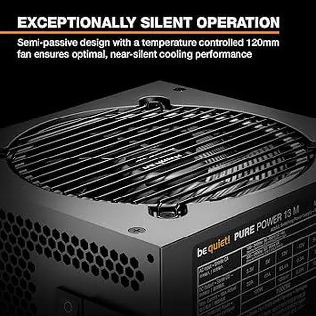 Pure Power 13 M 1000W Power Supply, 80 Plus® Gold Certification, ATX 3.1 PSU, Support for PCIe 5.1 GPUs, semi-Passive 120mm Fan, LLC Technology, Single Rail, for Overclocked GPUs 1000W 13 M