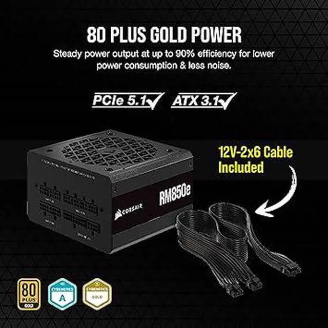 RM850e (2023) Fully Modular Low-Noise Power Supply - ATX 3.1 & PCIe 5.1 Compliant - 105°C-Rated Capacitors - 80 Plus Gold Efficiency - Modern Standby Support - Black