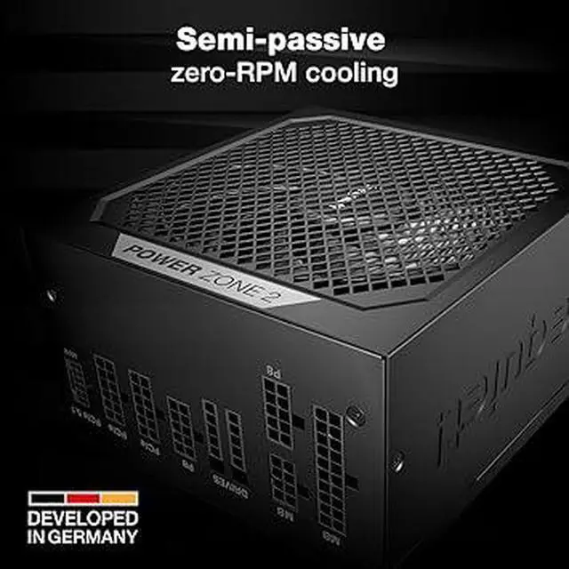 SEMI-PASSIVE ZERO-RPM COOLING | A large Pure Wings 3 140mm fan is keeping Power Zone 2 750W cool. While under low load, the fan turns off completely until its services are needed again for more demanding operations. This post-ventilation requires a short cooldown period of 2-5 minutes to avoid frequent and annoying starts and stops of the fan. Combined with the large fan for active cooling, this power supply is exceptionally silent in all load scenarios.