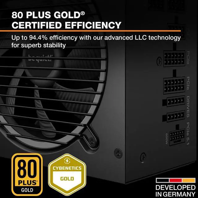 80 PLUS GOLD CERTIFIED Pure Power 13 M 750W is certified 80 PLUS Gold with an outstanding efficiency rating of up to 94.3%. The most compelling benefit: lower power consumption, consequently lower costs, and above all a cooler as well as quieter operation. Pure Power 13 M 750W is always the correct choice for quiet systems and gaming PCs!