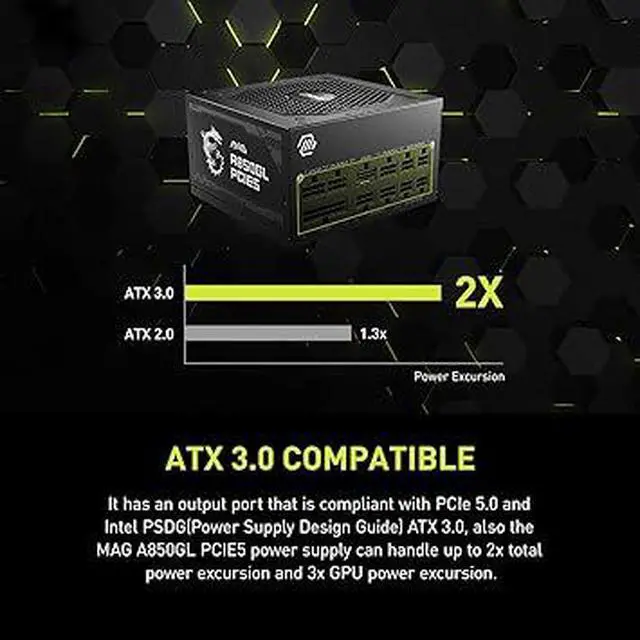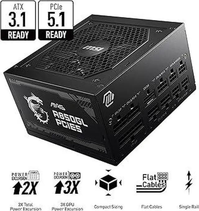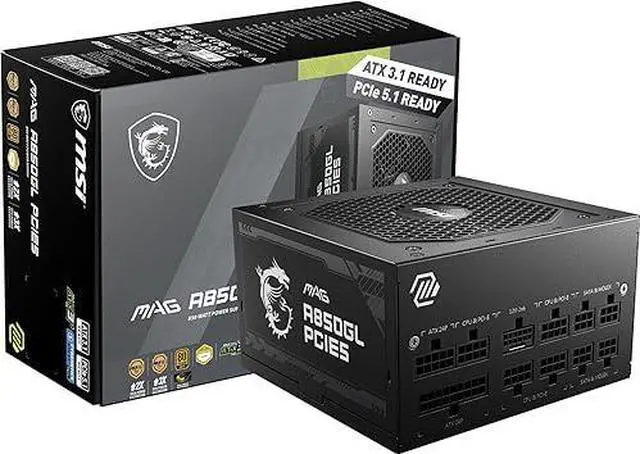 MAG A850GL PCIE5, Fully Modular Compact Gaming 850W Power Supply, 80+ Gold, ATX 3.1 & PCIe 5.1 Ready, Native Dual-Color 12V-2x6 Cable, 10 Year Warranty