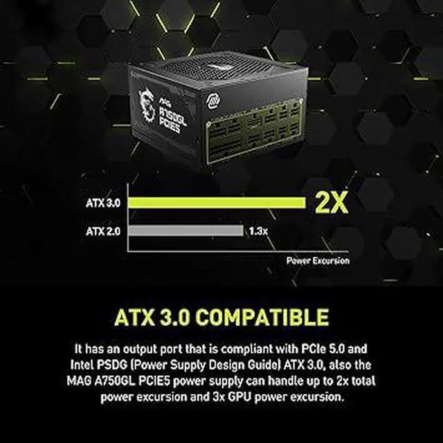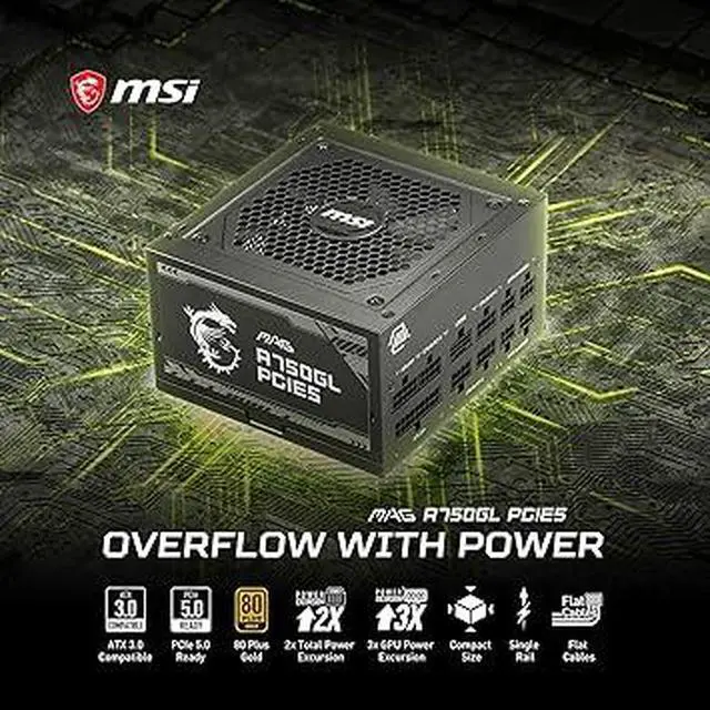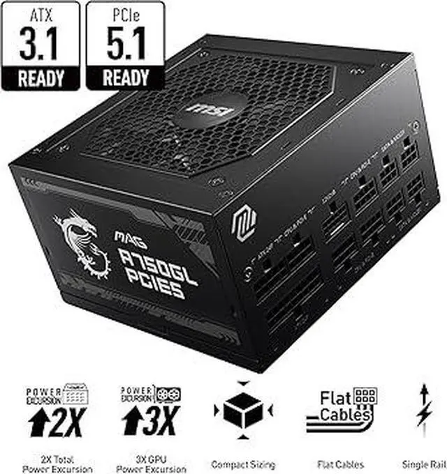 MAG A750GL PCIE5, Fully Modular Compact Gaming 750W Power Supply, 80+ Gold, ATX 3.1 & PCIe 5.1 Ready, Native Dual-Color 12V-2x6 Cable, 10 Year Warranty