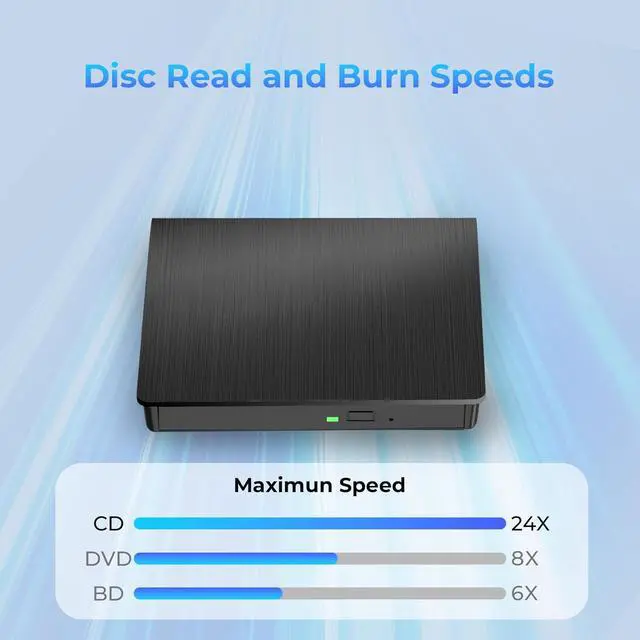 Note: This external blu ray burner supports 3D playback, delivering a lifelike experience with clarity comparable to 4K quality. However, it is important to mention that the drive cannot play 4K Ultra HD Discs. Additionally, please ensure that the playback software installed on your computer is compatible with the blu ray format. We recommend downloading the software "Cyberlink BD&3D Advisor" and installing it on your computer to verify if it supports Blu Ray or 3D playback. Please note: The software is not included with the optical drive.