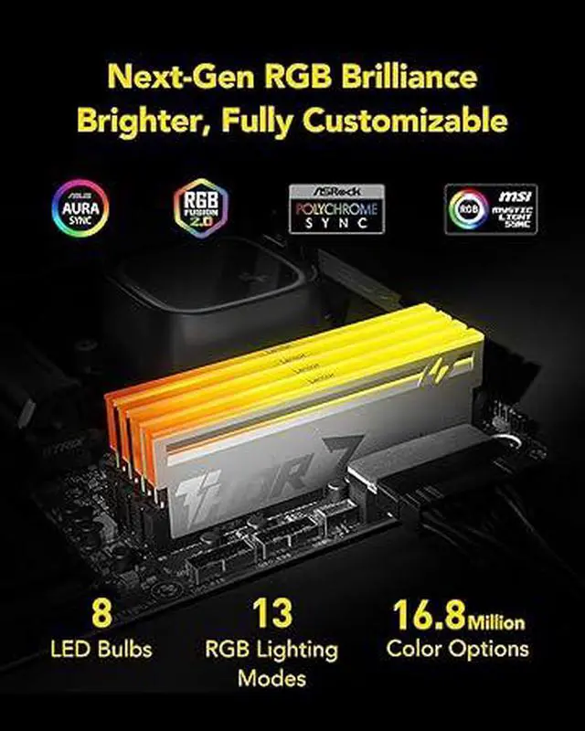 Game in Style with RGB Lighting. Personalize your experience with customizable RGB lighting that is brighter than our previous-gen Lexar THOR Z Series RGB DDR5 RAM memory and enjoy a more immersive gaming experience.